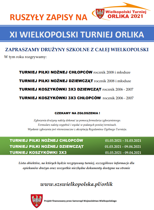 Ruszyły zapisy na Wielkopolski Turniej Orlika 2021.